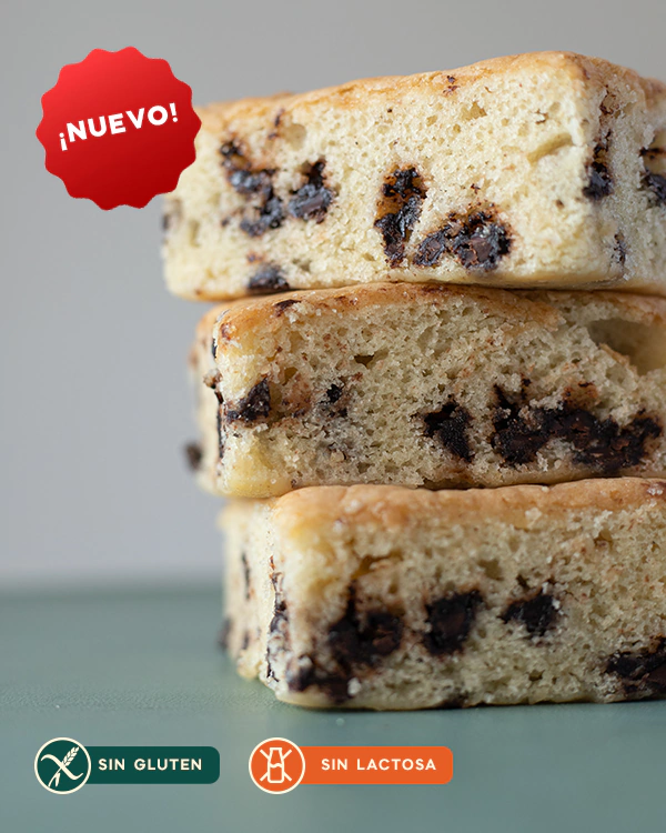 Ingredientes: Azúcar, Chips de chocolate, aceite, harina de arroz, almidón de maíz, fécula de mandioca, harina de trigo sarraceno, harina de sorgo, goma xántica, polvo leudante, Esencia vainilla, Propionato de Calcio. CONTIENE HUEVO.
