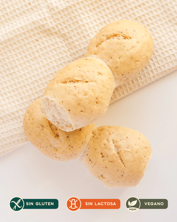 Ingredientes: Agua, almidón de maíz, fécula de mandioca, fécula de papa, margarina, harina de trigo sarraceno, harina de sorgo, goma xántica, polvo leudante, levadura, sal, azúcar, psyllum, CMC, propionato de calcio.
